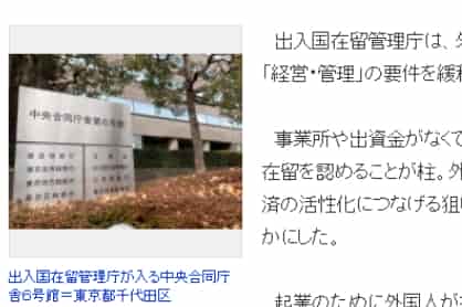 據日本媒體的報道,為了緩解外國人在日本創(chuàng)業(yè)取得日本在留資格的困難,日本政府決定出臺新政策,將放寬外國人在創(chuàng)業(yè)時的獨立事務所和資本金的要求,只要項目計劃獲批,就能獲得兩年的日本在留資格。